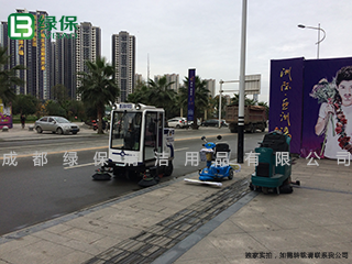 2015年11月24日,  成都綠保清潔用品有限公司自主品牌綠美保H860B駕駛式洗地機以及新型封閉式掃地機MN-E800FB、電動塵推車走進溫江洲際-亞洲灣,為亞洲灣