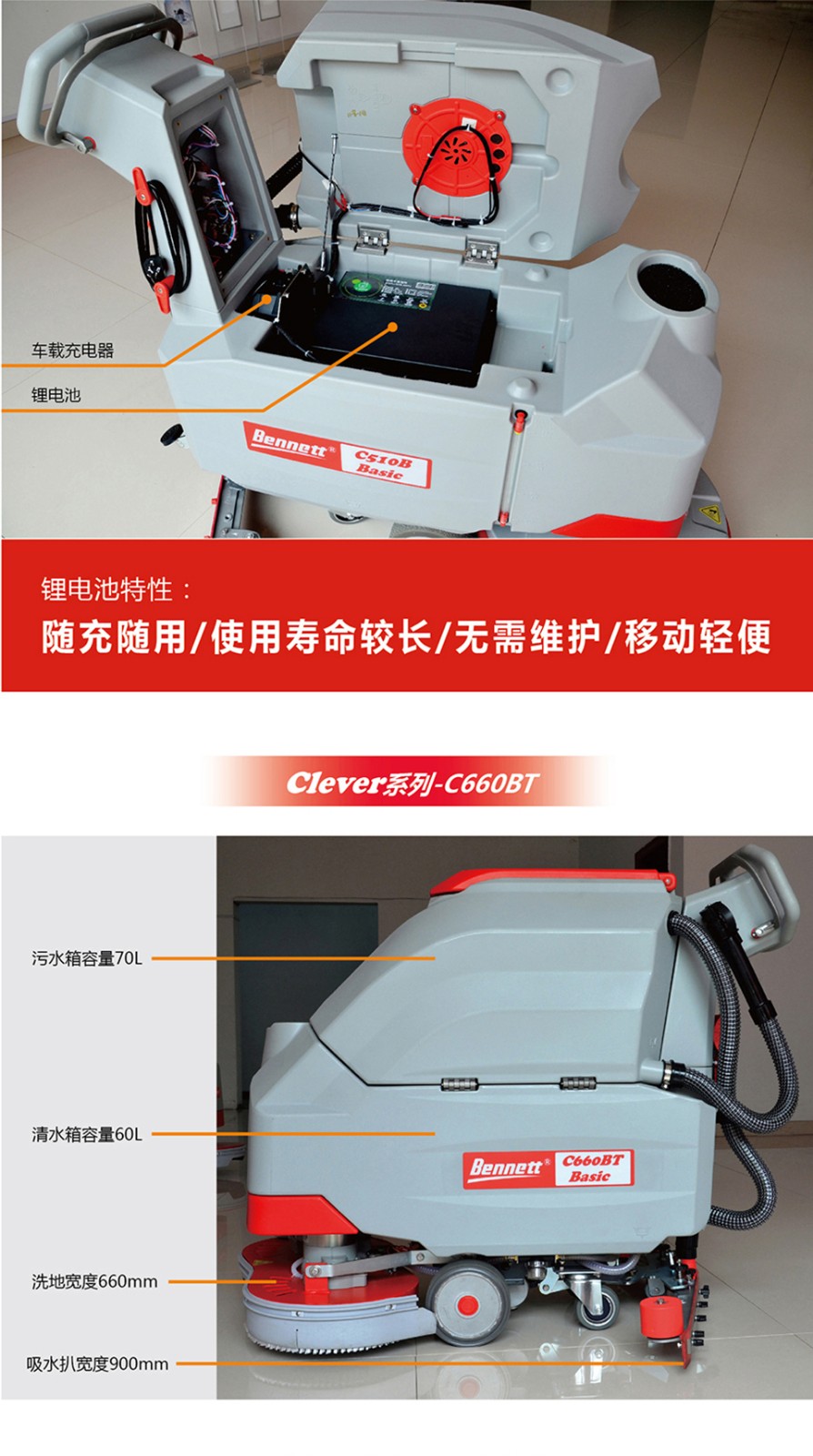 關鍵詞:雙刷洗地機,高效洗地機,手推式洗地機,C660BT,Bas